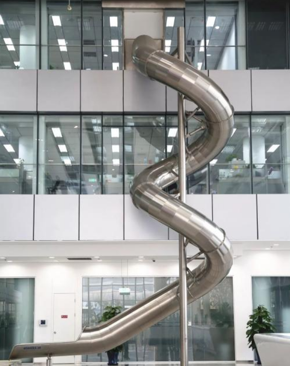國內(nèi)也有裝上滑梯的樓,它就是百度科技園,位于中關(guān)村軟件園二期內(nèi),滑梯從三樓到一樓,目測長度有二十多米,下班不用坐電梯,這個設(shè)計(jì)堪比坐電梯,一溜煙就下來了,太歡樂了,整天的工作煩惱頓時都忘掉了。